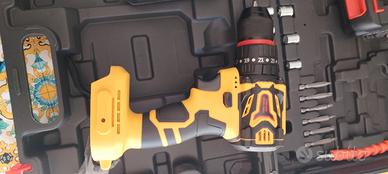 Trapano Avvitatore Batteria 21V, con Batterie 4000mAh, coppia 45 Nm max, 25 + 3 livelli di coppia (2 marce e LED), 2×2,0Ah Batterie, per casa e giardino fai da te (Giallo)