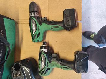 Set di 2 avvitatori Hitachi di cui 1 a impulsi compreso di 2 batterie carica batterie e valigetta morbida