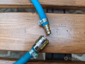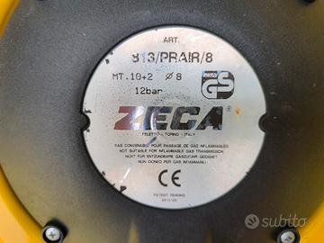 Avvolgitubo per aria compressa usato ma con tubo nuovo appena sostituito. lunghezza 10m diametro interno tubo 10mm. Presenta alcuni segni sulla verniciatura. Completo di attacchi rapidi.