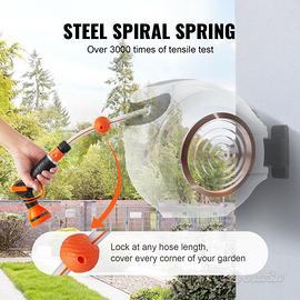 · Rimane Bloccato in Posizione: grazie al sistema di bloccaggio, il tubo può essere bloccato a qualsiasi lunghezza che desideri. L'avvolgitubo da giardino retrattile automatico è preinstallato con un tubo da 25 m x 12 mm. È dotato di una molla elicoidale in acciaio incorporata che ha superato un test di trazione più di 3000 volte, rendendola liscia e non invecchiata durante lo stiramento a lungo termine.