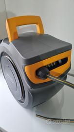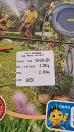 Avvolgitubo Hozelock da 30 metri, ideale per il giardino. - Colore grigio e giallo. - Maniglia per il trasporto. - Tubo incluso.