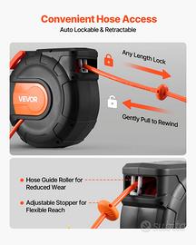• Venditori Affidabili di Esperienza • Spediamo ovunque, anche in Contrassegno • Vendiamo solo articoli Nuovi di prima qualità • Contattaci per qualsiasi info necessaria Niente più tubi aggrovigliati: l'avvolgitubo retrattile include un tubo flessibile in PVC da 15 m x 9,5 mm e un tubo di alimentazione da 1 m per mantenere l'area di lavoro ordinata e senza grovigli. Niente più tubi che strisciano sul pavimento Riavvolgimento automatico: gestisci il tuo tubo facilmente con il sistema di riavvolgimento automatico: basta tirarlo delicatamente. Il fermo regolabile e il blocco del binario integrato consentono di fissare il tubo a qualsiasi lunghezza Resistente e flessibile: il tubo flessibile in PVC resiste fino a 300 PSI e funziona in modo affidabile da -5°C a 45°C, resistendo a torsioni, schiacciamenti e scoppi per un flusso d'aria regolare. L'avvolgitubo in plastica è leggero e resistente Facile da collegare e multiuso: il nostro tubo dell'aria ha superato i test di tenuta stagna e si collega facilmente ai tuoi utensili pneumatici e al compressore con il raccordo BSP da 1/4". Ideale per gonfiare pneumatici, verniciare a spruzzo Staffa girevole a 180°: il avvolgitubo per compressore d'aria è dotato di una staffa girevole a 180° per utilizzo più flessibile in più direzioni. Può essere montato su soffitti, pareti o pavimenti, mantenendo il tubo flessibile a portata di mano