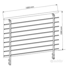 I singoli elementi della ringhiera sono forniti in sezioni lunghe 1,5 metri e consentono una rotazione flessibile di 90° grazie alla connessione a sfera. Le balaustre sono realizzate in robusto acciaio zincato, mentre il corrimano è realizzato in un resistente alluminio.