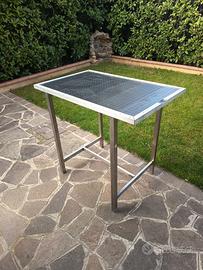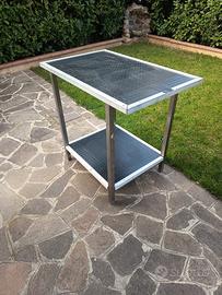 Come da titolo vendo banco da lavoro 60x100 h90 Il banco è completamente in acciaio inox 304 , saldato in corpo unico con scatolato 35x35 spessore 2mm quindi molto solido. Ha due ripiani in legno gommati con angolari in alluminio di protezione. Sulla giunta laterale era montata una morsa. Ha piedini filettati su cui montare ruote o piedini livellanti che lascio insieme al banco. A corredo cassettiera a 3 cassetti in metallo. Per ovvie ragioni di ingombro e costi non spedisco.