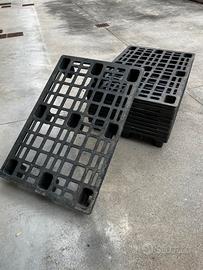 Vendo 10 bancali in plastica nera robusti, misure 120x80cm altezza 15 cm.