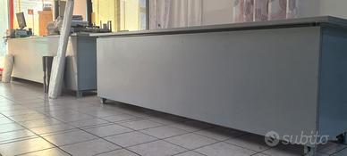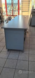 banchi da lavoro struttura in ferro 80/100 cm 330cm anche con cassetti, piano sottostante tutto aperto oppure chiuso su tre lati