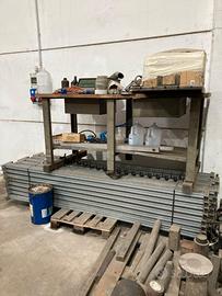 n. 2 banchi da lavoro interamente in metallo € 500,00 cad n. 1 canco da lavoro con piano legno € 100,00