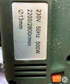 Banco con trapano, piu trapano rosso, piu smerigliateice