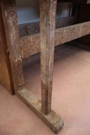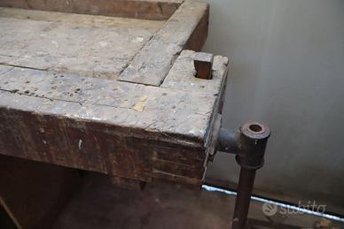 Banco da falegname con morse da restaurare, completo, stabile, non tarlato. Il piano è lungo 209CM, profondo 91CM, spessore 8,5CM in asse unica da 36CM. Altezza banco 84cm