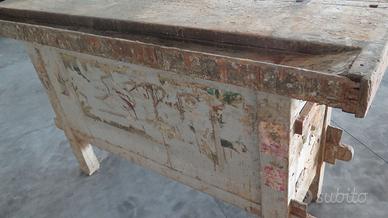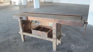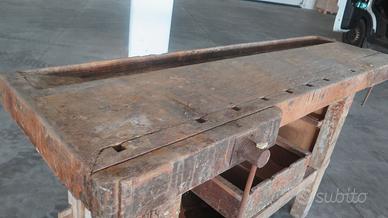 Vecchio banco da falegname in faggio in buono stato e operante. Ingombro del piano 212x65 cm