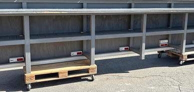 Pratico Banco da Lavoro o accoglienza interamente realizzato in legno lamellare verniciato. ideale per realizzazioni di bar stagionali o accoglienza e di trasporto e scarico con gru, il banco è visibile subito e montato. Massima serietà.