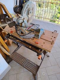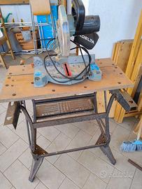 Banco da lavoro Black& Decker usato in ferro, porta ruggine ma indistruttibile, pieghevole, insieme a sega Delta con voltaggio americano funziona bene, vendo causa trasloco