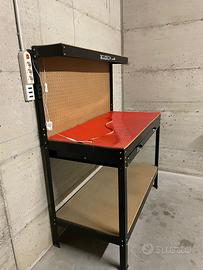 Banco da Lavoro con piano da 120x60cm, parete forata e ganci universali per attrezzi + 1 cassetto porta utensili