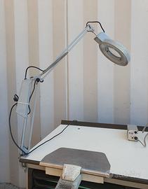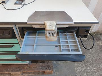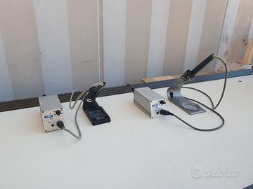BANCO DA LAVORO CON DUE POSTAZIONI SALDATURA, UNA LAMPADA LUCE E UNA CON PREDISPOSIZIONE ASPIRAZIONE FUMI, DUE SALDATORI ETNEO SX 50W - 420°, IMPIANTO ARIA COMPRESSA CON DUE PISTOLE - Usato, buone condizioni - Dimensioni: cm 190x66x93h PREZZO FATTURABILE