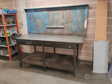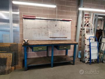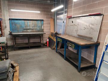 Disponibili due banchi da lavoro con parete porta attrezzi e morsa con due cassetti Misure 82x198 h90 pannello 202x85cm 70x200 h90 pannello 200x85cm Vendibili separatamente Pedane in omaggio. Costo 390€ l'uno.