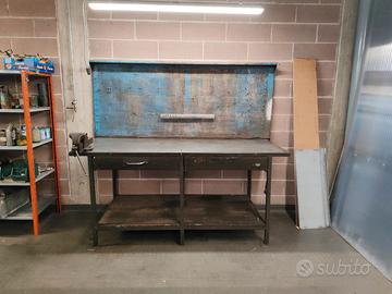 Banco da lavoro con parete porta attrezzi e morsa