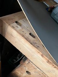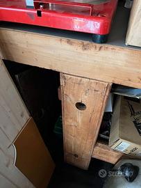 Banco da falegname in massello di faggio ottimamente conservato , con morsa legno, e un cassetto. Eventuale consegna da concordare. Dim. 230x76x90h cm. Con eventuale aggiunta di foglio laminato grigio protettivo sul top , come in una foto attuale.Il piano risulta gia' levigato a nuovo.