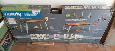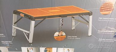 Banco da lavoro robusto e solido che si può usare come tavolo da lavoro oppure come trabattello. Articolo professionale, e come.si vede dalle immagini ci si può tranquillamente salire .. Articolo nuovo, usato solo come campione di vendita per mostrarlo ai potenziali clienti. Non è sporco ne rovinato. Viene venduto con il suo imballo originale che come da fotografia fatta da me. Il prezzo è già molto più basso di quello che vale!