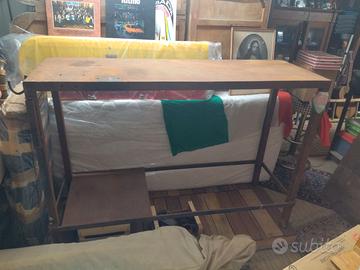 Vendo banco da lavoro in ferro. Lo stato di conservazione generale è buono. Come da foto sono presenti normali segni del suo vissuto. Misure: 1,50 x 50. H tot 1,05mt. H ripiano da terra 23cm. Vuoto dal ripiano basso a sotto il piano da lavoro 77cm. Prezzo: 120€ trattabili