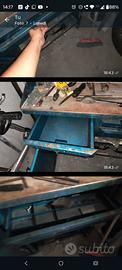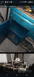 banco da lavoro in ferro pesante di officina, disponibili chiavi a T da meccanico per bulloni auto e altro, armadietto a chiave , cassetto a chiave e cassetto per minuterie con vassoio estraibile divisori. altezza bancone 86 cm da terra. misure max ingombro: 121x110x71. 121 cm lunghezza x 110 altezza x 71 cm profondità. trasporto con auto capiente o piccolo furgoncino. vernice un po' scrostata come da foto disponibile contatto per trasporto