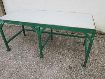 Vendo banco da lavoro in ferro con tubolare da 4 cm e piano in truciolare pressato laccato di cm 3 .Misure tavolo 188 x 81 altezza 83 . Disponibili 7 pezzi uguali .