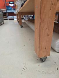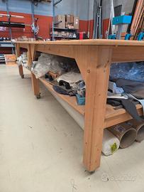 Tavolo in legno di abete massello su ruote, con ripiani in mdf. Misure 185x360x100. Vendita per liquidazione aziendale. Ritiro a partire da fine gennaio, visionabile su richiesta. Scrivetemi per altre informazioni!