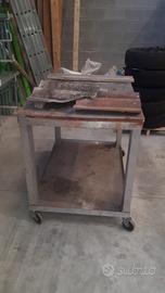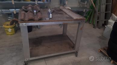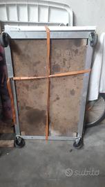 vendo banco da lavoro a due ripiani con ruote, smontabile misure 77 x 117 H 90 cm.