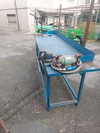 Banco da lavoro professionale con tre cassetti in ferro, morsa e mola. Dimensioni 217 cm lunghezza, 65 cm larghezza e 90cm di altezza. Robustissimo e molto pesante.