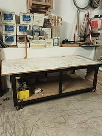 banco da lavoro professionale su ruote 250 x100, telaio in ferro