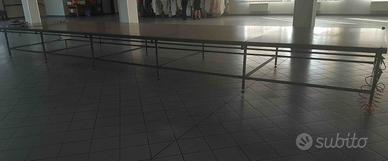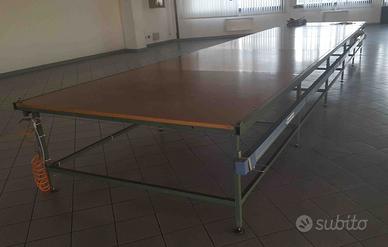 Banco da lavoro o tavolo da taglio industriale lunghezza totale 8,5 metri, divisibile in 5 singole unità da 1,7 metri, larghezza 2 metri, è modulare, quindi si può montare la quantità di moduli in base alle necessità.