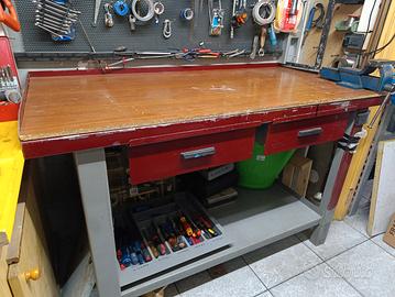 banco da lavoro super robusto, come non ne fanno più. largo 150 cm profondità 70 altezza 90 centimetri. con due cassetti. nel prezzo non è inclusa la morsa, solo il banco