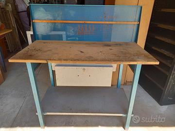 Banco da lavoro con piano in legno dimensioni cm. 130 X cm.66 , con cassetto in metallo, e porta atrezzi
