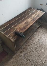 Banco da lavoro compreso di morsa con telaio in ferro tubolare e tavolato superiore da 3,5 cm e inferiore da 2cm. Misure: lunghezza 2,10m x larghezza 85cm x altezza 90