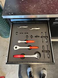 Vendo banco da lavoro Unior 182 x 60cm compreso di atrezzi per manutenzione bici + parete porta attrezzi e morsa da banco.