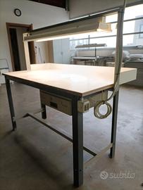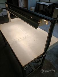 Piano in formica e struttura metallica con cassetto e interruttore.