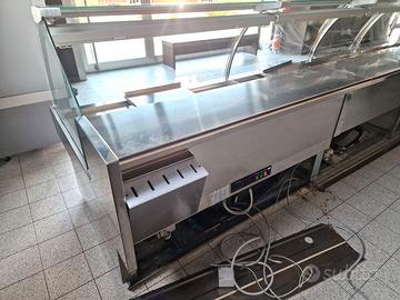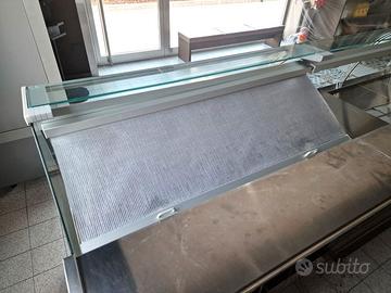 banco da macelleria usato del 2021, si tratta di un banco espositivo per: carne, salumi, formaggi, pollame, ecc di marca Tecnobanc modello ARA DSV 1 TEMP del 2021 e in ottime condizioni. dispone di vetri curvi con illuminazione, statico di nuova generazione con piano espositivo raffreddato alla base con micro ventilazione, con finiture in legno scuro e completo di tendine frangi freddo per la notte.