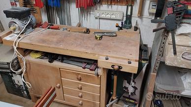 Dotato di morsa, 4 cassetti, vano con sportello e sottopiano. ideale per un laboratorio hobbistico. Praticamente ha solo bisogno di una ripulita generale e di oliatura conservatrice. Non ha rotture. Chiaramente non spedisco ma accetto solo ritiro c/o il mio domicilio.