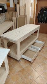 Banco da falegname tavolo da lavoro 70*200 con 2 cassetti, ruote, doppio ripiano, struttura in massello e lamellare.