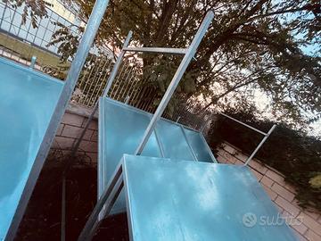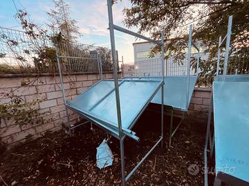 Vendo perché ho chiuso il negozio vendo banchi di ferro e frutta verdura come nuovi 7 bnachi ferro zincato usato 4 mise 3 banchi 2,40m 3banchi 2,00m 1banchi 2,50m vendo di persona contanti niente altro