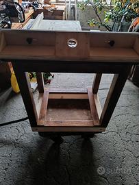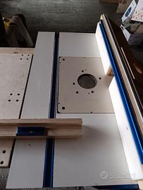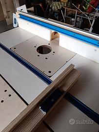 Vendo banco fresa autocostruito per Fresatrice cmt 7e. Il banco è realizzato con piano in bachelite (materiale molto scorrevole e indeformabile) da 60x90x2. Sul piano sono presenti t track per l'utilizzo di pressori o quant'altro. La guida ha una lunghezza di 85cm ed ha delle t track, il vano aspirazione e le chiusure tramite manopole. È compresa la piastra per il fissaggio della fresatrice CMT 7e. Il banco ha anche un carro che scorre su guide con cuscinetti utile per le lavorazioni di pezzi lunghi. La struttura è interamente realizzata in legno massello. Ideale per fai da te Banco fresa simile al tavolo industrio CMT. Preferibile ritiro in loco, in alternativa posso spedire