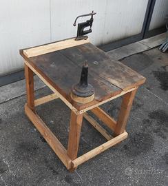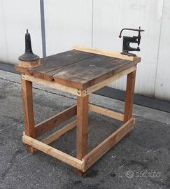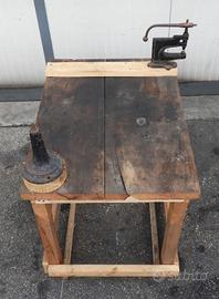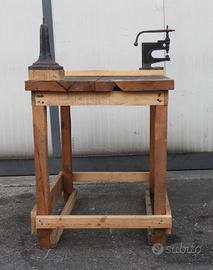 Banco in legno da lavoro usato, con attrezzi da calzolaio