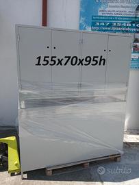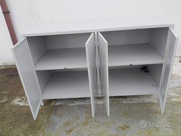 Banco in metallo o mobile con ante in metallo utilizzabile e adattabile come banco di lavoro