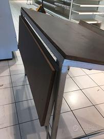 Dimensioni 130x80cm (+estensione 40cm), h variabile 76-96cm. Ideale per cassette di frutta e verdura.