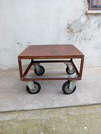 banco da officina in ferro largo 80 cm lungo 106 cm alto 79 cm spessore foglio del ripiano 3 mm euro 120 tavolino con ruote carrello in ferro lungo 68 largo 63 alto 50 cm diametro ruote 175 mm euro 150 bracere da giardino diametro 83 alto 88 smontabile in 2 pezzi €150