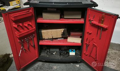 Vendesi banco lavoro con ripiani ed accessori per pareti attrezzate, in questo caso le ante fungono da piccole pareti