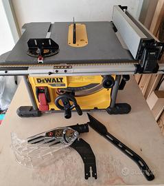 Sega circolare da banco a batteria DEWALT DCS7485 con motore brushless, versione senza fili del banco sega DEWALT DWE 7485. Vendo con tutti gli accessorinella dotazione originali, visibili nelle foto, senza batterie e senza caricabatteria, funziona con una sola batteria al litio XR Flexvolt 18V/54V. Perfettamente funzionante, presenta solo graffi da utilizzo sul piano.