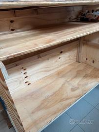 4 Banconi in legno per steet food e eventi. Sagomati con standard gastronorm I due grandi sono 130x60 Uno da 80x60 Uno da 70x60 Sono richiudibili e trasportabili. Cerrello opzionale a parte.