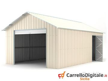 Il box prefabbricato 438 x 724 viene venduto nuovo con garanzia e con fattura o ricevuta fiscale. Viene consegnato all'indirizzo che ci verra' comunicato in kit di montaggio comprensivo di tutta la ferramenta necessaria a montarlo Box garage casetta prefabbricato in lamiera di Acciaio Zincata grecata con Saracinesca NUOVO, perfetto per il giardino usato come capanno per ricovero rimessa attrezzi o come riparo per auto moto, baracca da cantiere o box attrezzi SPEDIZIONE IN TUTTA ITALIA INCLUSA NEL PREZZO * Dimensioni esterne (incluso tetto): 4.38 m (Larghezza) x 7.24 m (Lunghezza) x 3.31 m (Altezza) * Dimensioni esterne (solo perimetro): 4.21 m (Larghezza) x 7.24 m (Lunghezza) * Altezza della parete: 2.37 m * altezza Colmo: 3.31 m * Metri Quadri: 31.7 mq * Rinforzo rigido: 80 mm x 40 mm , spessore 1,5 mm in acciaio zincato tubi telaio scatolato * Dimensioni porta principale anteriore: 2.55 m (Larghezza) x 2.20 m (Altezza) (Saracinesca) * Dimensioni della porta laterale: 0.72 m (Larghezza) x 1.93 m (Altezza) (1 porta) * Spessore pannelli: 0,32 mm * Spessore profili: 0,70 mm * 585 KG Ca. Telefono/Whatsapp: A soli 3171 euro IVA, spedizione ed assicurazione sulla spedizione inclusi nel prezzo Possibilita' di acquisto con pagamento alla consegna (SOLO CONTANTI no assegni) Attenzione, il metallo utilizzato non e' ferro o alluminio ma acciaio zincato. Il box in acciao in questione non e' coibentato (pannelli sandwich) ma puo' essere modificato facilmente e con una spesa minima. La casetta da esterno e' composta da profili e pannelli in acciaio zingato e verniciato in maniera da poter resistere alle intemperie. A differenza di quelli in legno i box in lamiera zincata non necessitano di nessuna manutenzione Telefono/Whatsapp: