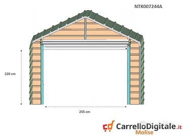 * Dimensioni esterne (incluso tetto): 4.38 m (Larghezza) x 7.24 m (Lunghezza) x