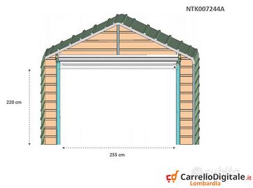* Dimensioni esterne (incluso tetto): 4.38 m (Larghezza) x 7.24 m (Lunghezza) x